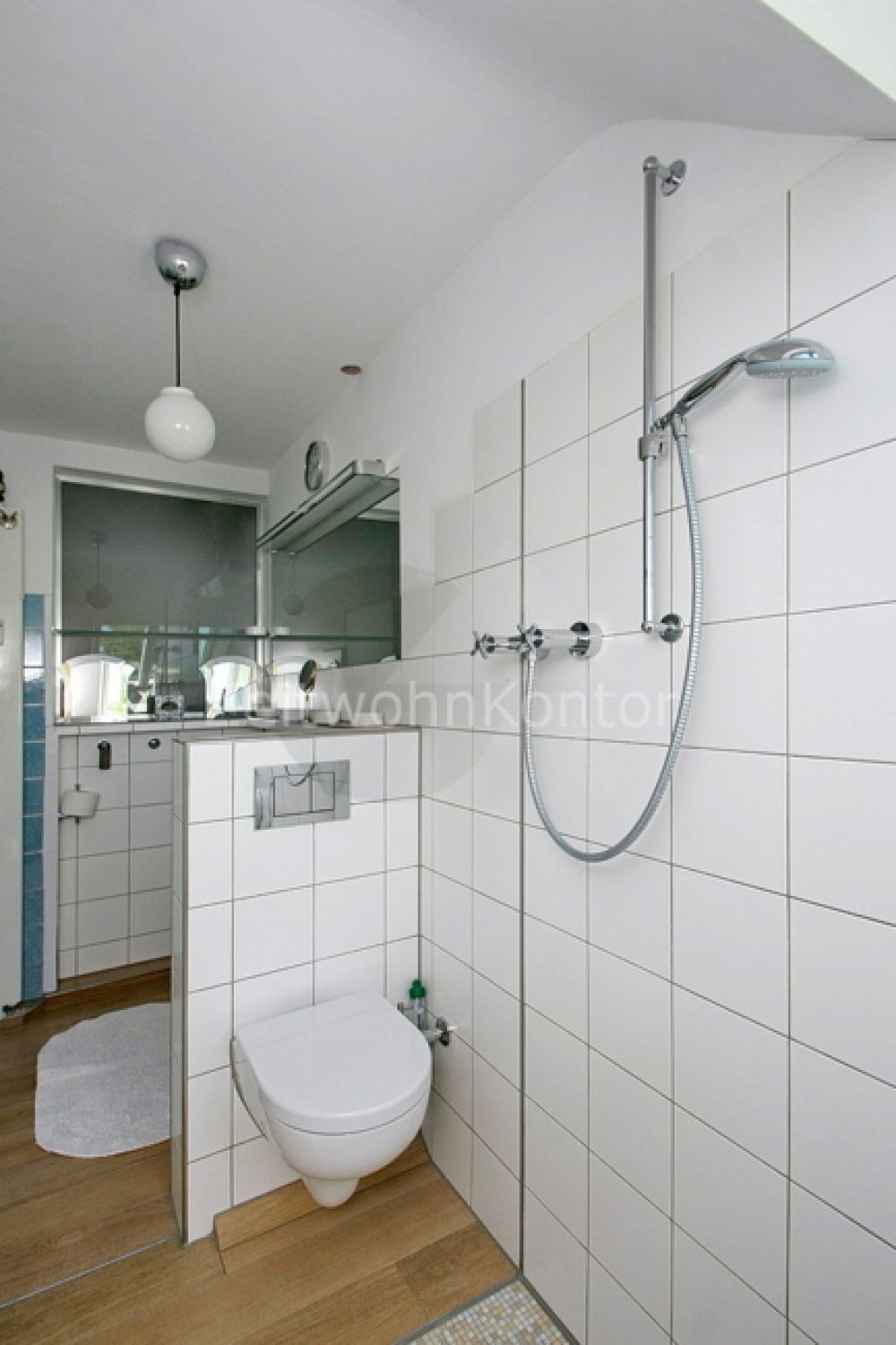 Großer Wohnschlafraum mit Couchecke und Sat-TV, Esstisch mit 4 Sitzplätzen, Schreibtisch. Einzelbett (1 x 2 m), Internet aktiv. Modernes, hellgefließtes Duschbad mit Glasduschwand. Die Küche ist vollausgestattet: Ceranfeld, Mini-Backofen, Geschirrspüler, Waschvollautomat, Kühl-Gefrierkombination, Kaffee-Filterautomat etc.