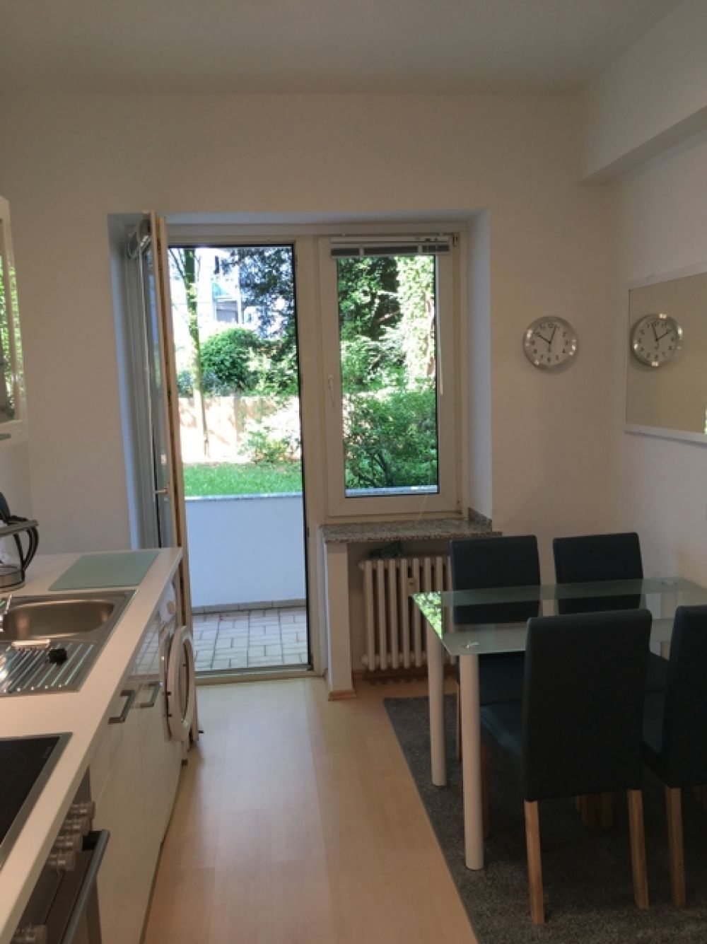 2,5 Zimmerwohnung im Zentrum mit Balkon und hochwertiger Möblierung. Diese ruhige und helle Wohnung befindet sich im Erdgeschoss eines Mehrfamilienhauses. Zu der Wohnung gehört ein sonniger Westbalkon mit Blick in den Garten. Die Küche ist mit einer Einbauküche ausgestattet. Geschirrspüler, Mikrowelle, Kühl/ Gefrierkombination sind nur einige Ausstattungsmerkmale. Ein Eßplatz für 2 Personen findet ebenfalls in der Küche Platz. Das Wohnzimmer ist freundlich eingerichtet und verfügt über TV/Hifi. DSL muss separat angemeldet werden. In dem geräumigen Schlafzimmer finden Sie ein Doppelbett und einen Kleiderschrank. Das Bad ist modern, weiss gefließt und verfügt über ein Fenster. Eine Waschmaschine ist ebenfalls in der Wohnung vorhanden.