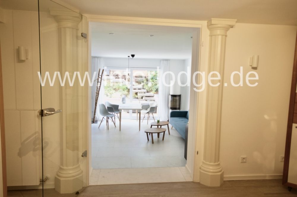 Designer-Küche ist komplett ausgestattet Die Sonnenterrasse liegt vor dem geräumigen Wohnzimmer.