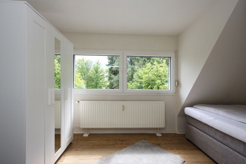 Wohnzimmer mit gemütlichem Ohrensessel und Hocker zum Beine hochlegen. DVBT2-TV, Zugang zum Balkon. Der alte Ofen ist Dekoration. Das separate Schlafzimmer liegt zum Garten und ist mit einem 140er Bett und Kleiderschrank ausgestattet. Die separate Küche hat einen Zwei-Platten-Herd, Kühlschrank, Mikrowelle, Toaster, Kaffeemaschine etc. Großes, helles Tageslichtbad mit Dusche. Waschmaschine. Die Mieter versteht sich als Komplettmiete inkl. Strom und Internet für eine Person. Zzgl. Endreinigung.
