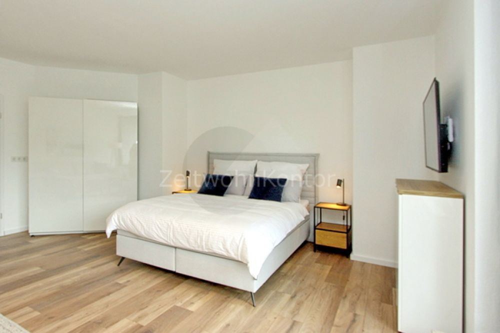 Schick modern ausgestattet mir großem Doppelbett und Kleiderschrank. Couchecke ,TV zu allen Richtungen schwenkbar, WLAN aktiv. Die Küchenecke mit Esstisch für 2 Personen ist voll ausgestattet: Ceranfeld, Backofen, Geschirrspülmaschine, Mikrowelle, Kaffeemaschine etc. Das moderne Duschbad ist mit Glaswand, Handtuchheizkörper und Waschtrockner ausgestattet. In der Diele gibt es einen großen Einbauschrank. Der große Balkon blickt auf den Park, der kleine in anderer Richtung ebenfalls ins Grüne. NICHTRAUCHERANGEBOT, Warmmiete zzgl. Strom (Vorauszahlung € 40, wird abgerechnet), Internet inklusive. Endreinigung bei Miete bis zu 3 Monaten € 85,-, ab 4 Monaten Mietdauer € 135,-