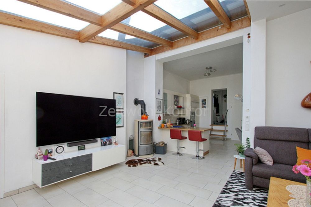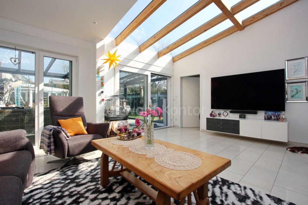 Hochwertig und schick möblierte Wohnung mit offener Küche im großen Wohnraum, mit separatem Schlafzimmer, großem Kalt-Wintergarten/ verglaster Terrasse und Garten.