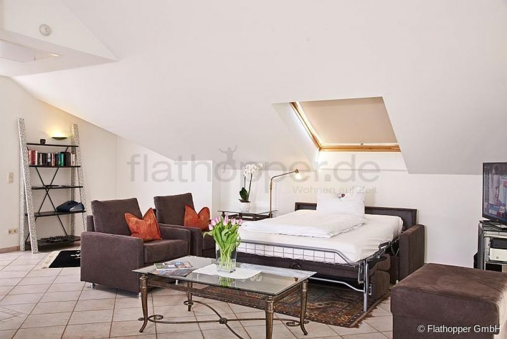 Die Studiowohnung ist über einen separaten Eingang zu erreichen. Gehobene, zeitgemäße Einrichtung.