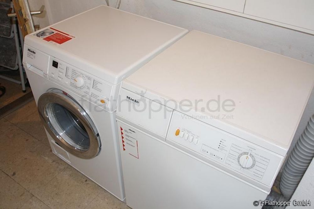 Eine Waschmaschine und Trockner befindet sich im Haus.