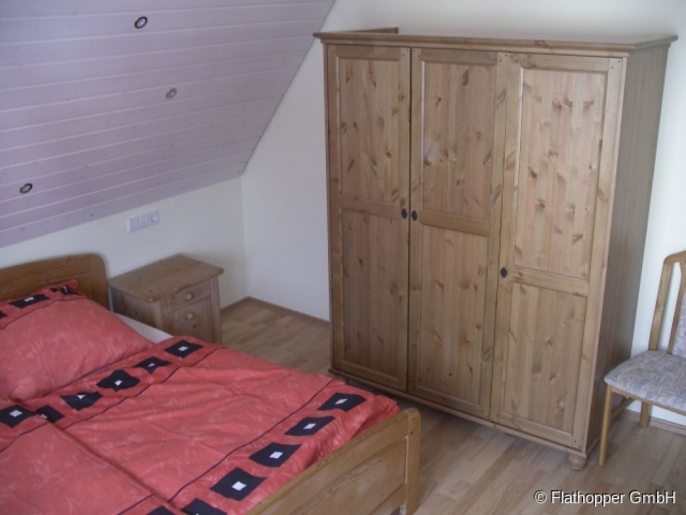 Im ersten Stock befindet sich das Schlafzimmer, ein weiteres Zimmer, das wahlweise als Büro oder Kinderzimmer genützt werden kann mit der Dusche und dem WC.