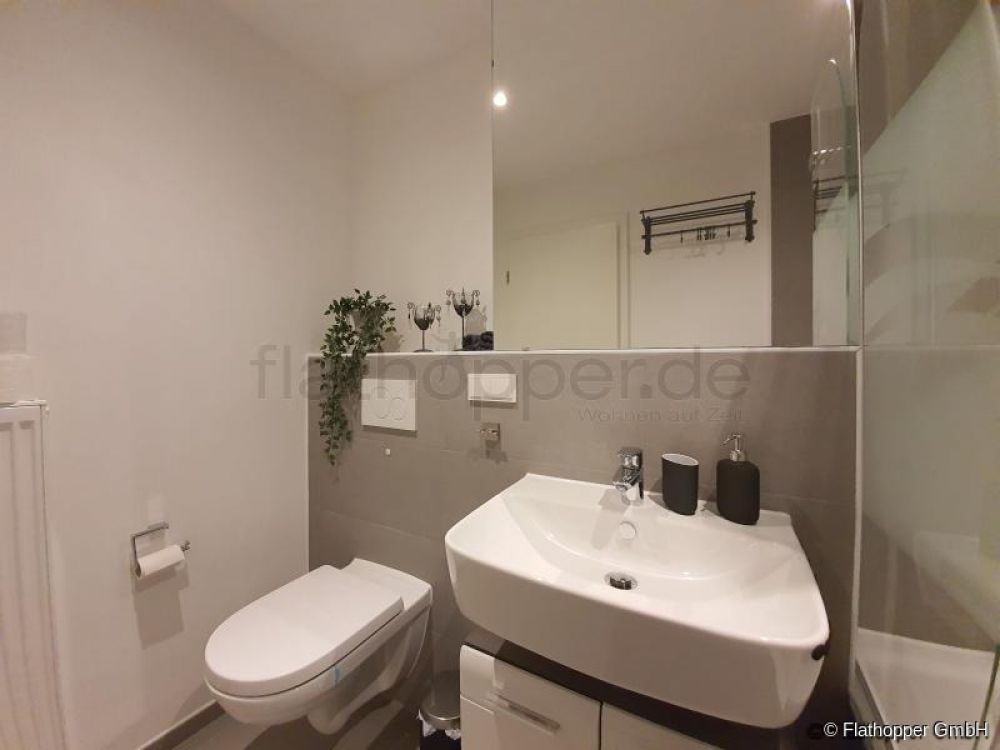 Die Wohnung beinhaltet einen aufklappbaren Esstisch mit 2 Stühlen, eine große neue Couch, ein weißes Sideboard und einen Kleiderschrank. In der Wohnung befindet sich ein Flatscreen-TV. Der Schlafbereich beinhaltet ein 1,40 m Bett und einen Nachttisch.
