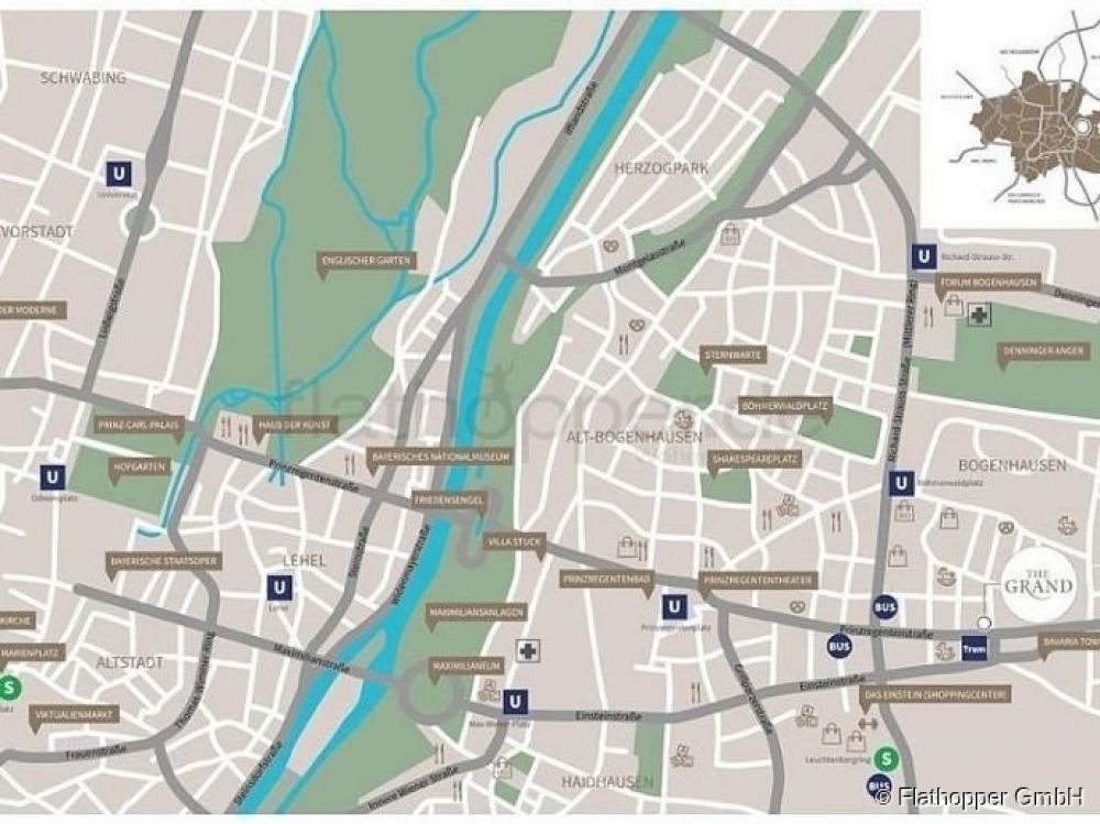 Die Wohnung befindet sich in einem sehr beliebten Stadtviertel von München, Bogenhausen. Bogenhausen zeichnet sich durch die Nähe zu den Isarauen, zum Englischen Garten und zur Innenstadt aus.