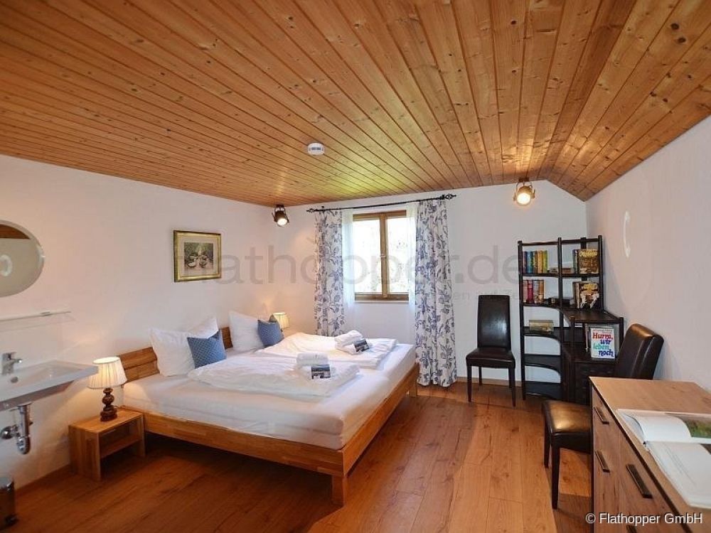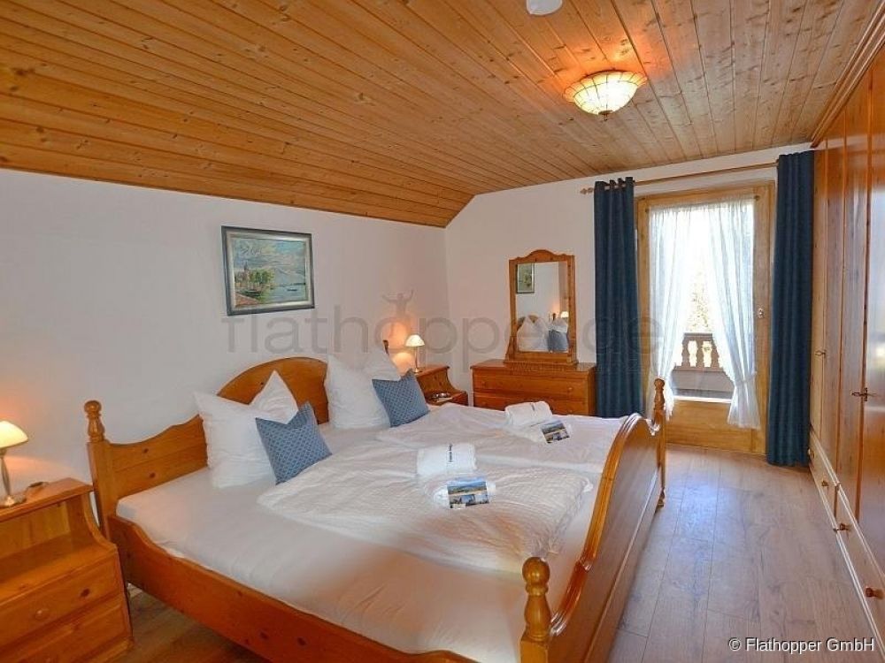 Im Obergeschoss befinden sich drei Schlafräume. So bietet ein Schlafzimmer zwei Räumlichkeiten, welche durch einen offenen Durchgang miteinander verbunden sind. Treten Sie zuerst ein in den Wohnbereich, welcher mit Tisch und Stühlen, Schrank und Fernseher ausgestattet ist. Durch die Verbindung gelangen Sie in das Schlafzimmer, welches mit Doppelbett und Waschbecken eine perfekte Einheit bildet.