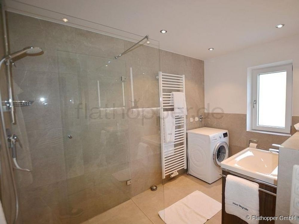 Ein modernes Badezimmer mit ebener Dusche und WC ist ebenfalls auf der Etage vorhanden. Garderobe und Flur vervollständigen diese Ebene.