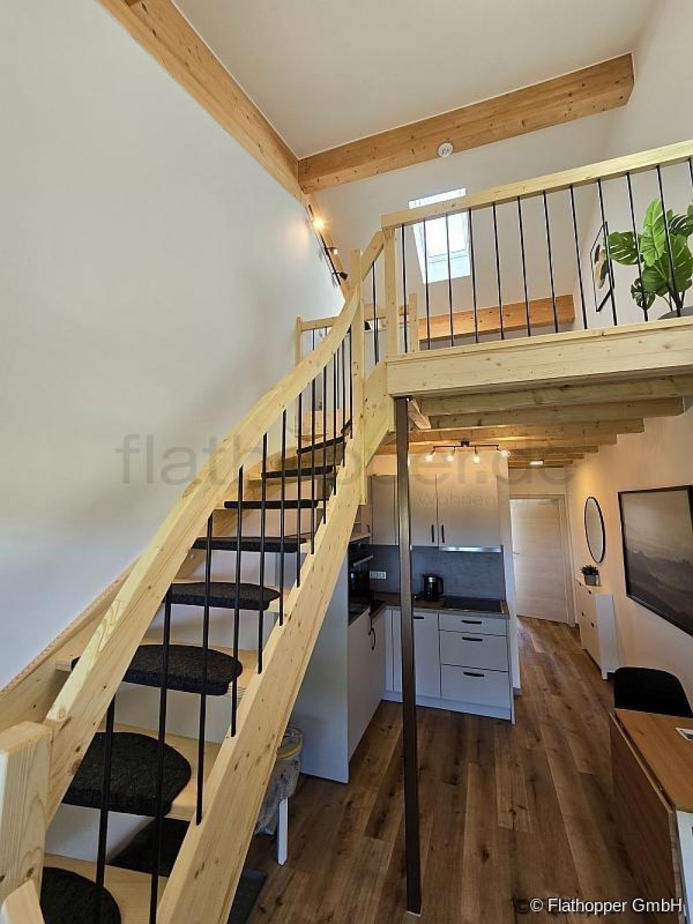 Auf der Galerie befindet sich das Wohnzimmer mit einem Tagesbett, welches auch als Couch nutzbar ist und z.B. ausgezogen Gästen einen Schlafplatz bietet. Zudem vorhanden ist ein Flat-TV.