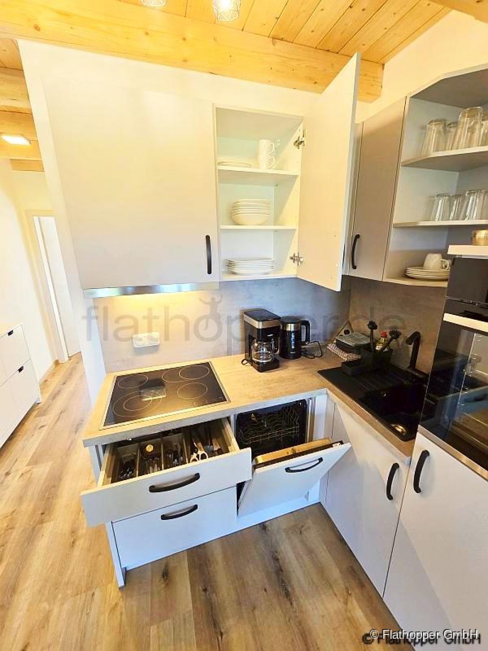 Neue Einbauküche mit Cerankochfeld, Ofen, kleine Spülmaschine und Kühl-/Gefrierkombi.