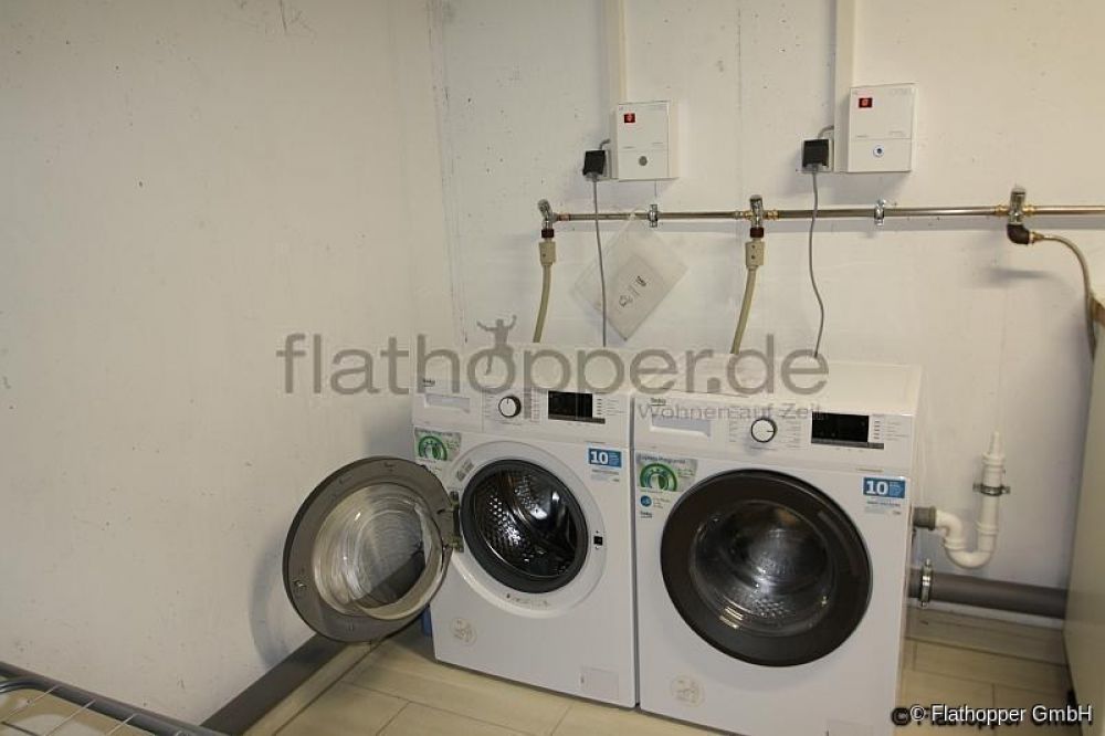 Waschküche im Haus mit Waschmaschine und Trockner.