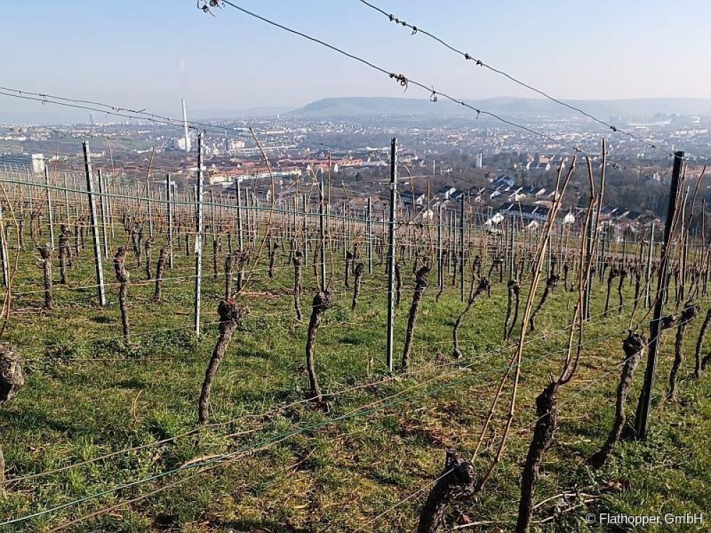 In traumhafter Aussichtslage mit Blick über die sanften Hügel und Weinberge, sowie Teile der Innenstadt und Bad Cannstatt, Neckar und Schwäb. Trotzdem zentral gelegen und moderne Panoramawohnung in einem Passivhaus (2004).