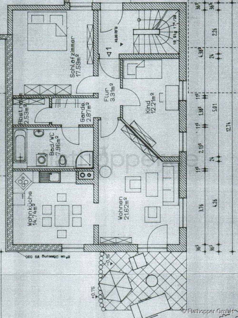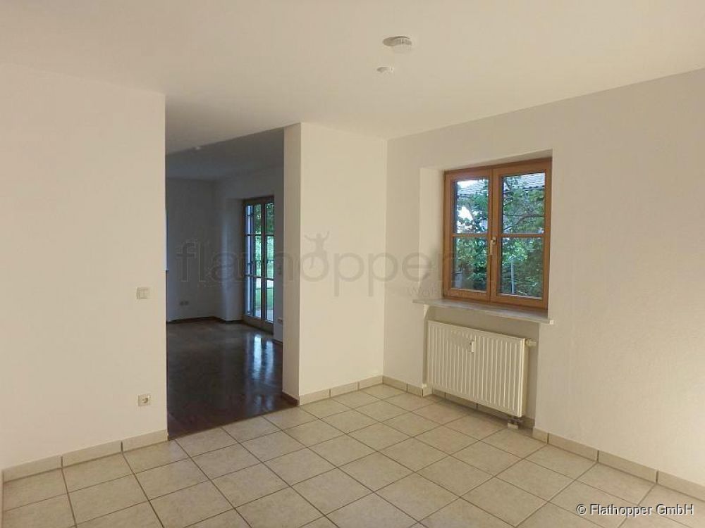 Gegenüber des Eingangs liegt das ca. 21 m² große, helle Wohnzimmer. Von hier aus gelangt man auf die sonnige Terrasse. Der Garten wird nicht mitvermietet. Über das Wohnzimmer gelangt man zur großzügigen Wohnküche.