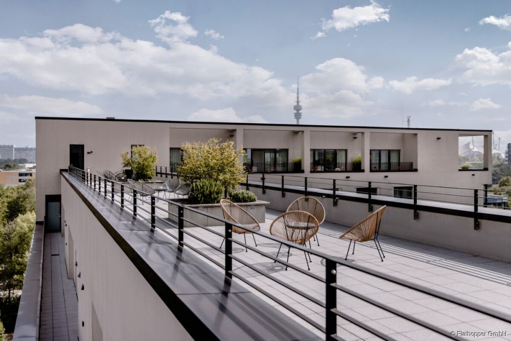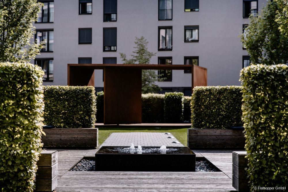 Kostenfreier Fitnessbereich, Waschraum mit Waschmaschinen und Trocknern (gegen Gebühr), große Dachterrasse und grüner Innenhof, Tiefgaragenstellplätze