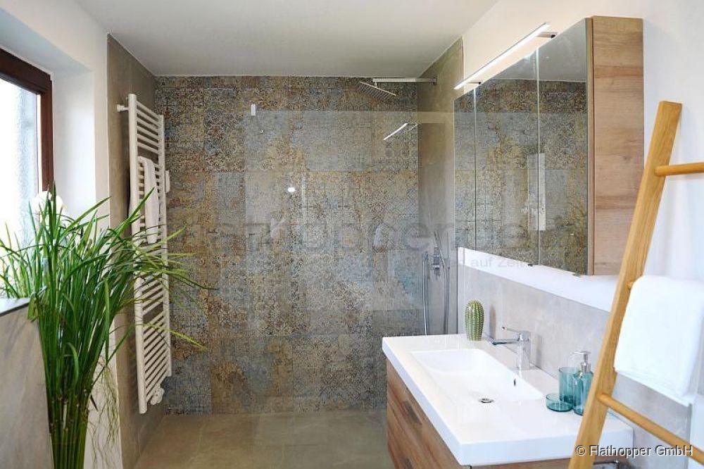 Im Badezimmer mit einer Walk-In Regendusche können Sie sich erfrischen, um danach den Abend im Chiemgau ausklingen zu lassen.