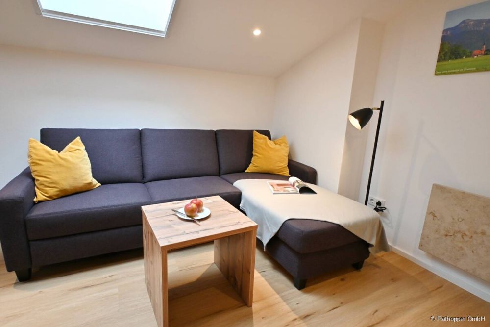 Ein besonderes Extra ist die Möglichkeit zur Gartennutzung auf der Westseite des Hauses: dort erwartet Sie auf dem Grün ein den Außenbereich der Wohnung mit Sitzmöbeln und Sonnenschirm – perfekt, um den Tag ausklingen zu lassen.