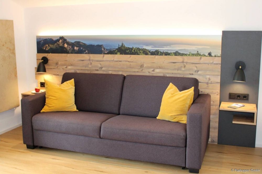 Separate Wohnzimmer – ein Durchgangszimmer zum Schlafzimmer – das mit einem hochwertigen Schlafsofa inklusive echter Matratze und großer Liegefläche zusätzlichen Komfort bietet.