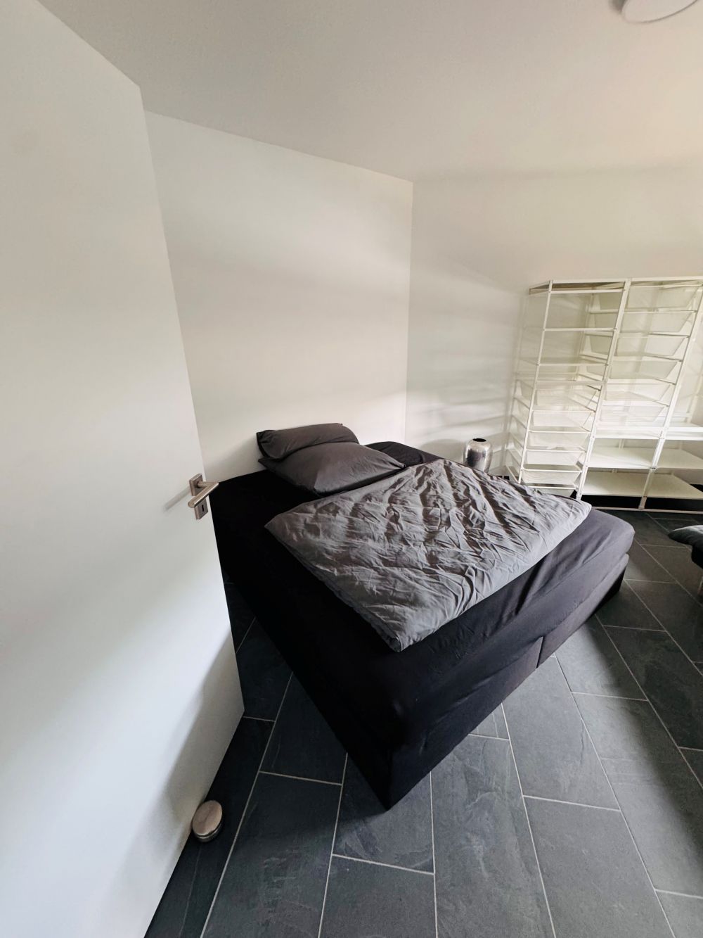 Schlafzimmer mit komfortablem Doppelbett (180x200cm) | Bettwäsche | Kleiderschrank | Arbeitsplatz | Schreibtisch | Stuhl