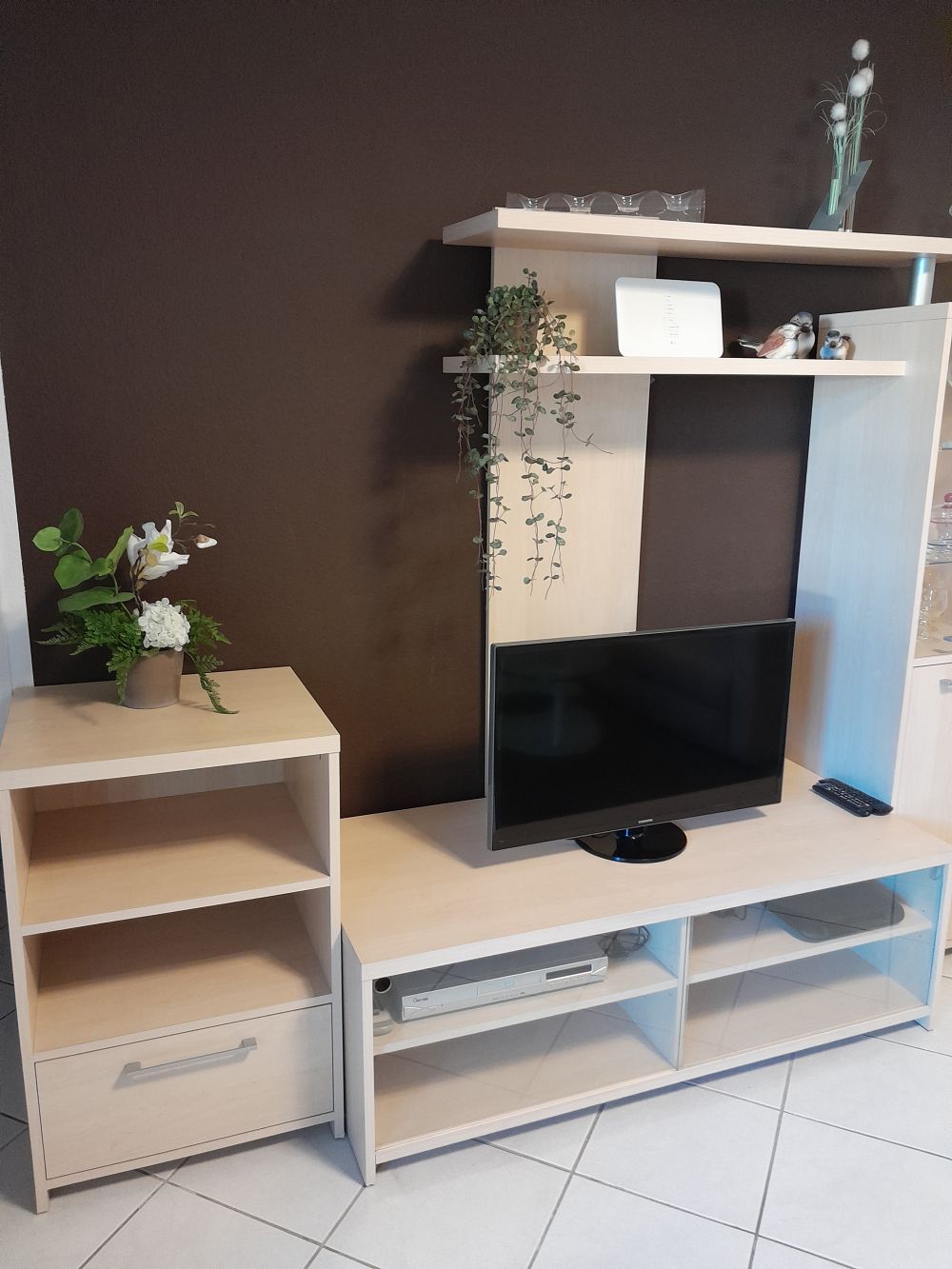 Wohnzimmer mit Eckcouch, Couchtisch, TV und Internet, Essplatz mit Balkonzugang, Separate Einbauküche mit Backofen, Cerankochfeld, Spülmaschine, Dunstabzugshaube,