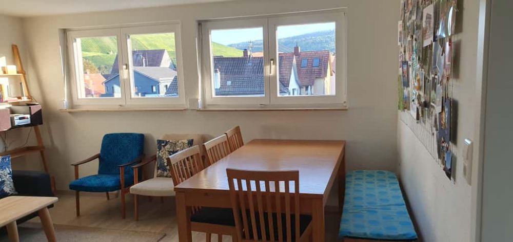 Wir vermieten wegen eines Auslandsaufenthalts unsere schöne, gemütliche und vollständig eingerichtete 3-Zimmer-Wohnung in Kernen-Stetten.