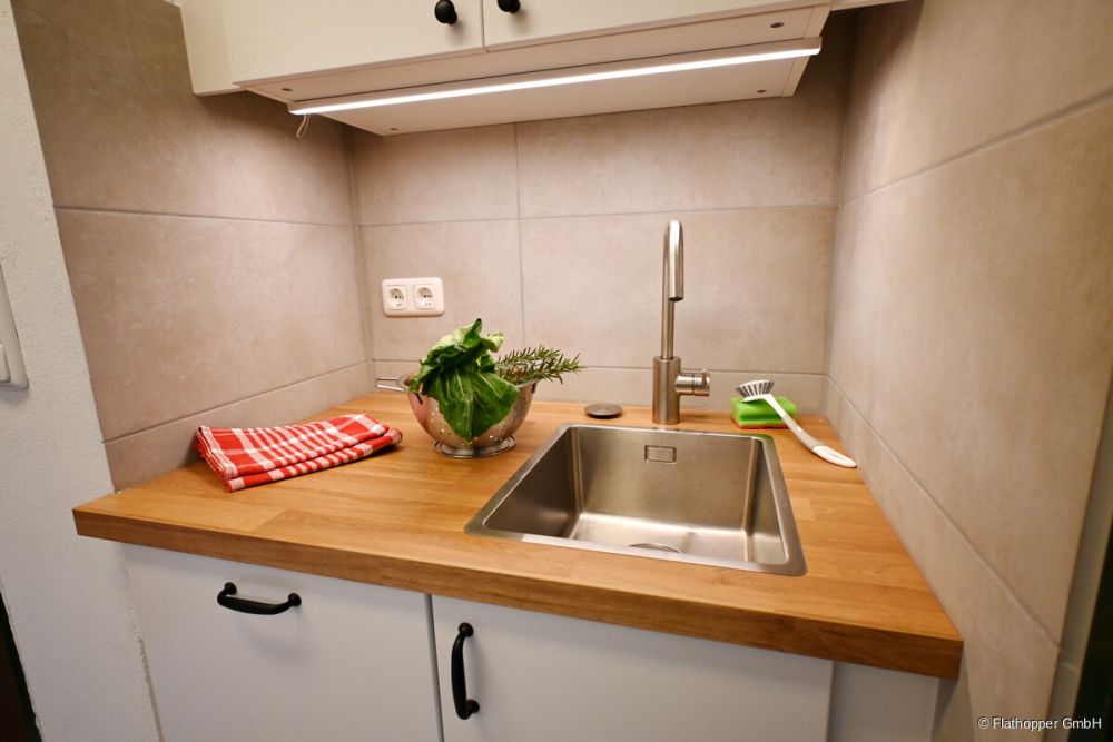 Rustikales Holzbett mit hochwertigen Matratzen, bayerischer Chic durch die Eckbank oder aber auch die neue Küche und das neu gestaltete Badezimmer mit Regendusche.