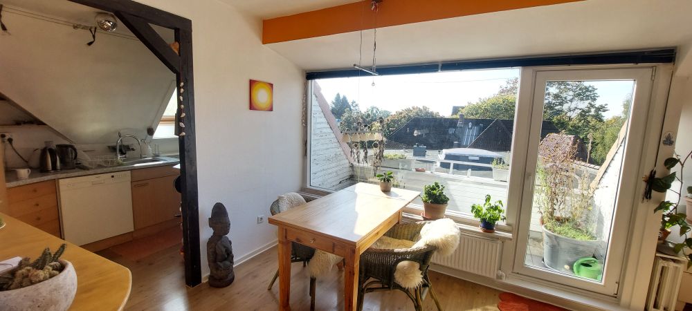 Unsere möblierte Dachwohnung mit Loggia im Altbau zur Zwischenmiete von 01.01.26 bis 09.02.26 (40 Tage) in Ohlsdorf/Fuhlsbüttel.