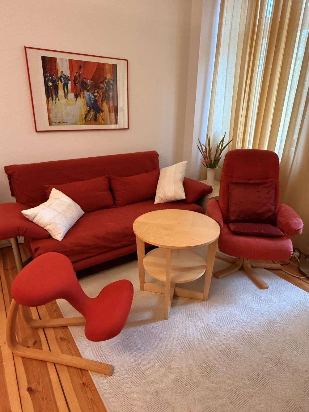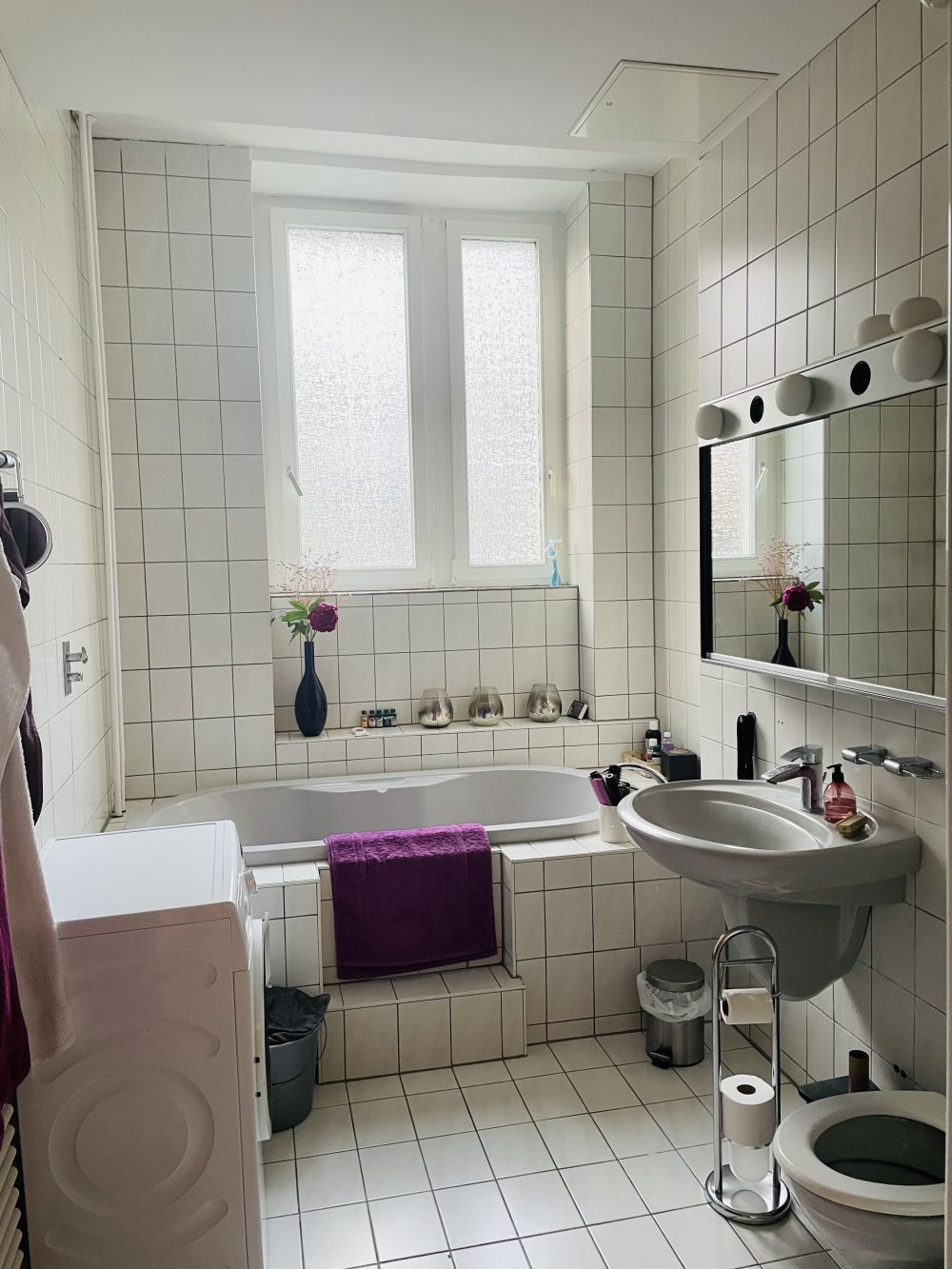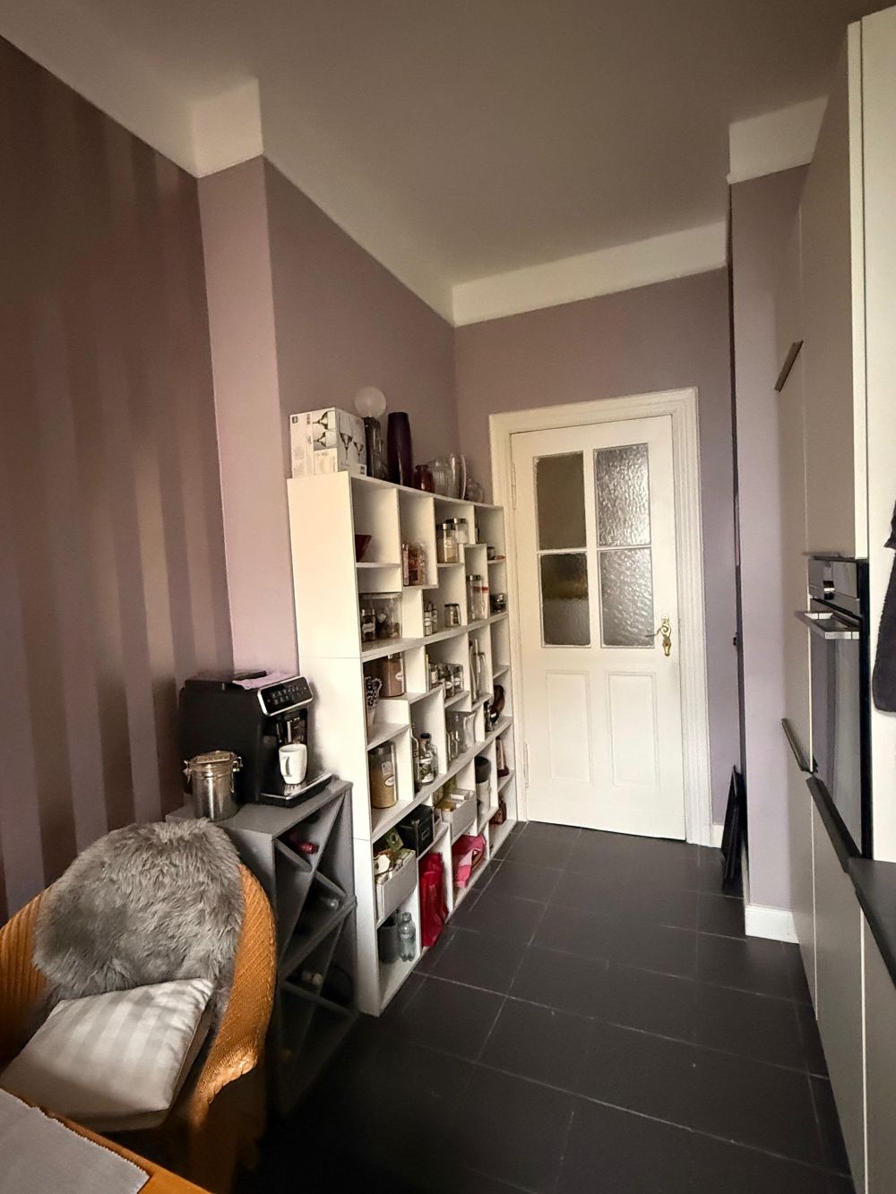 Die Wohnung verfügt über einen schönen Holzdielen-Fußboden, sie ist hochwertig möbliert (in zeitlos-modernem Stil: mit weißen bzw. Holzmöbeln) und wird von der Vermieterin normalerweise selbst bewohnt. Das Wohn-Arbeitszimmer ist ausgestattet mit Bücherregalen, einem großen Schreibtisch, Schlafcouch mit 160er-Bettfläche, Lesesessel etc.) und geht auf eine recht ruhige Straße hinaus, das Schlafzimmer verfügt über ein 160er Französisches Bett und einen großen Kleiderschrank; es weist auf den ruhigen Innenhof. Die Küche wurde 2021 komplett renoviert und mit allen Geräten erneuert, sie enthält einen Induktionsherd, Backofen mit Mikrowelle, einen großen Kühlschrank mit separatem Gefrierschrank, Geschirrspülmaschine und Spüle, eine Kaffeemaschine, ein großes Vorratsregal und alles, was man zum Kochen und Backen braucht, ferner einen Holztisch und zwei gemütliche Loomchairs. Das großzügige Bad enthält eine große Badewanne sowie eine separate Duschkabine, Waschbecken und WC sowie eine neue Waschmaschine; Gas-Zentralheizung ist in allen Räumen vorhanden. Der kleine Balkon liegt zur Straße hin. Internet / W-LAN ist in allen Räumen vorhanden und kann kostenlos genutzt werden.