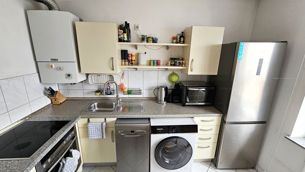 Große Küche mit Bosch Silence Spülmaschine, großem Kühl- und Gefrierschrank NoFrostPlus, Siemens iQ700 Waschmaschine (10 kg, App), Dampfgarer (neu), LG Mikrowelle (neu), Küchenmaschine, Soda Stream etc.