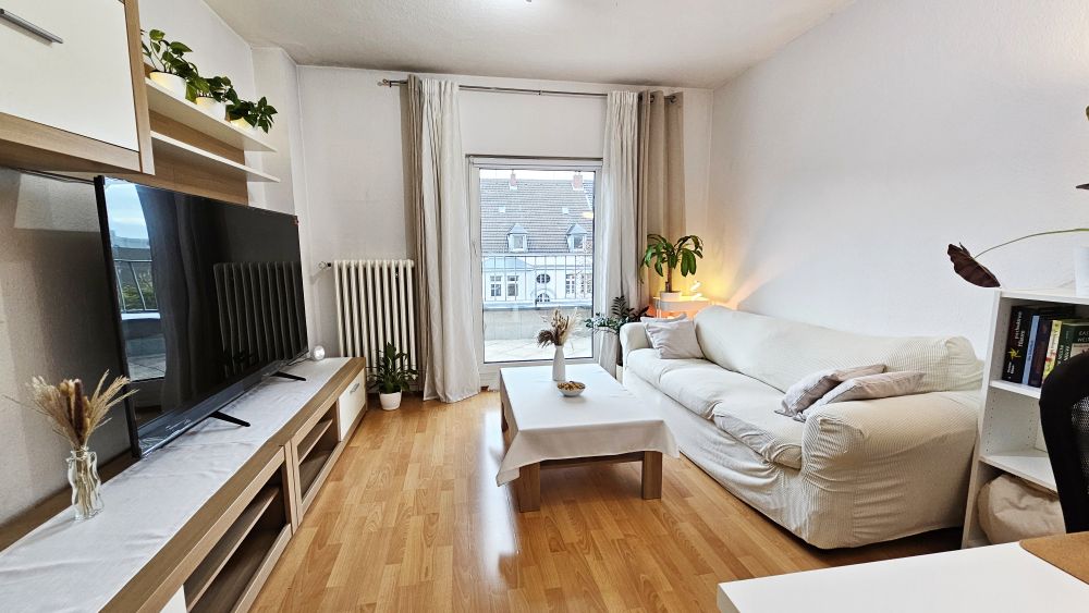 The apartment has 3 rooms and 65 m² of living space, plus an additional 12.4 m² balcony. It is available for sublet to quiet individuals or couples (or max. 2 people) for a period of 5.5 to 6 months, starting from November 15, 2025 (or earlier) until April 30 or May 30, 2026.