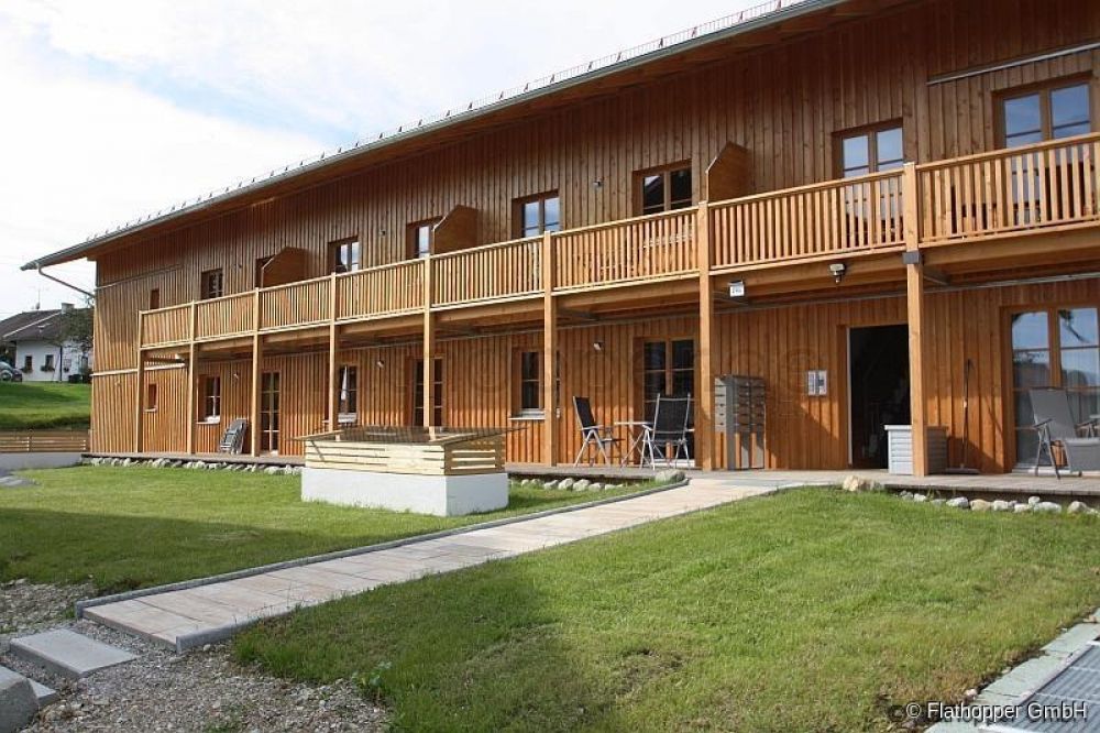 Gemütliche Galerie-Wohnung im Vollholz-Neubau mitten im Grünen. Angenehmes Raumklima durch Verwendung natürlicher Baumaterialien.