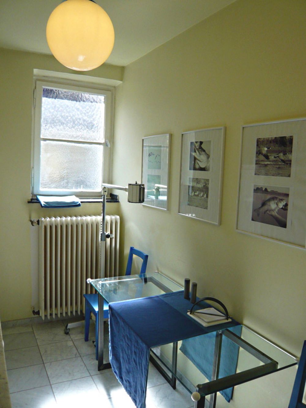 - Bedroom and study with two beds 140x200 cm each, glass desk, rosewood leather long chair with stool, various small