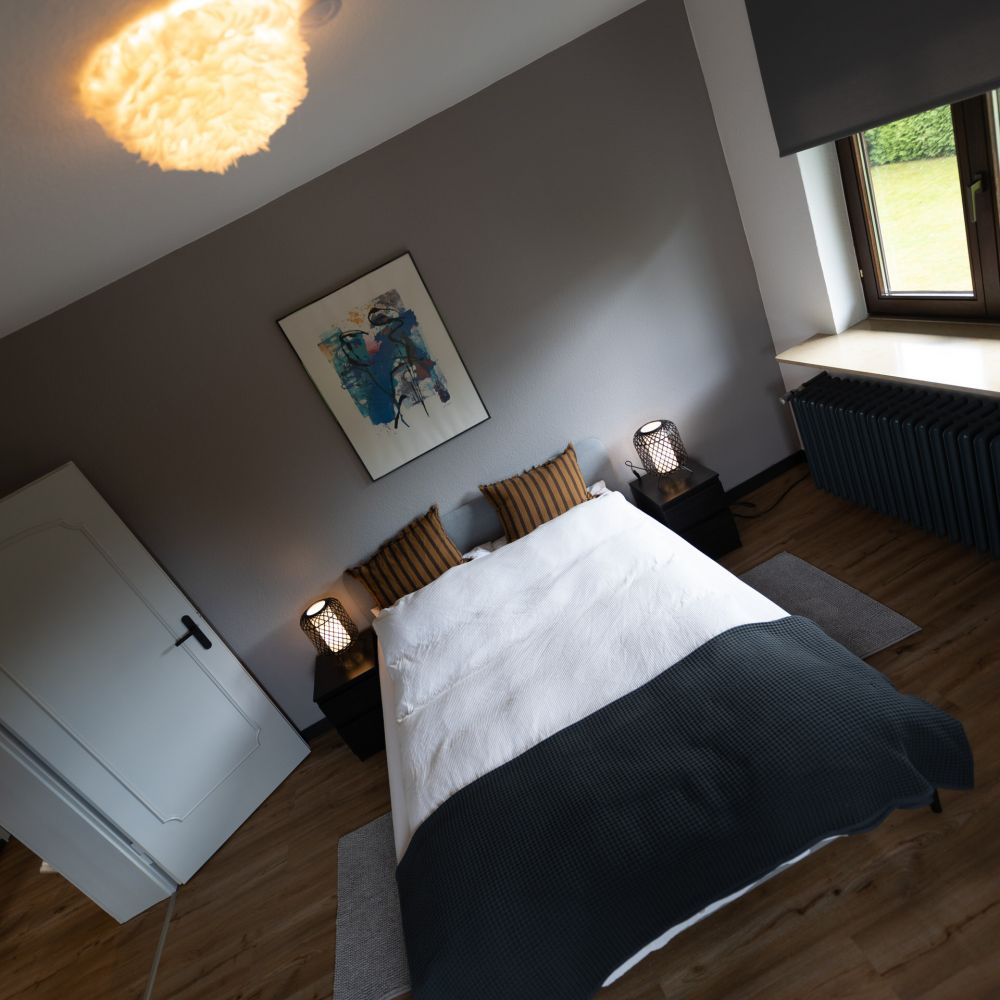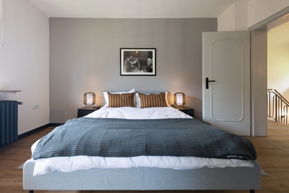 Die Schlafzimmer sind geräumig und stilvoll gestaltet. Jedes Zimmer verfügt über komfortable Doppel-Betten und ausreichend Stauraum.