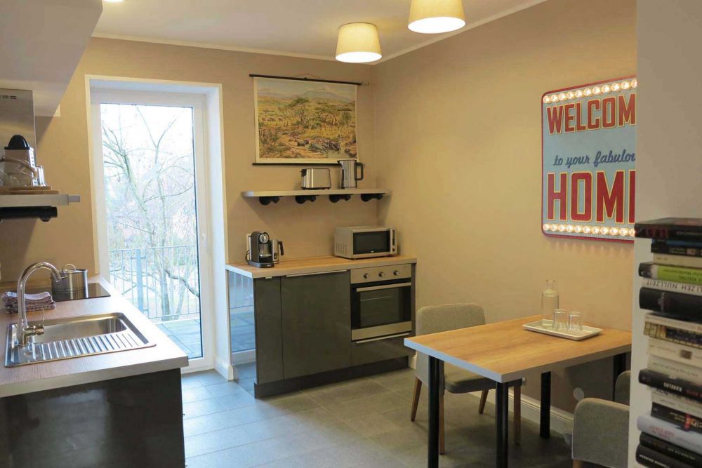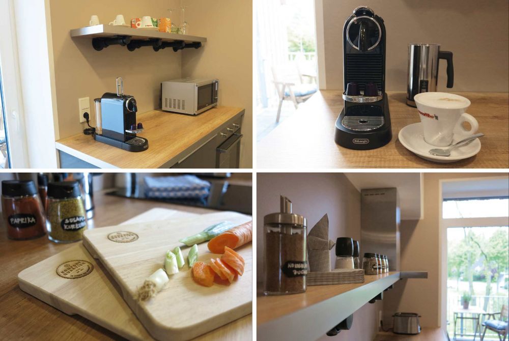 - voll ausgestattete, großzügige Küche mit Essplatz, Spülmaschine, Kühlschrank, Ceran-Kochfeld, Backofen, Mikrowelle, Nespressomaschine, Milchaufschäumer, Wasserkocher, Toaster,