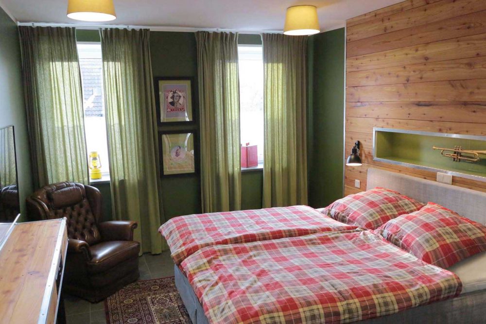 - Schlafzimmer mit King-Size-Bett, Sessel, Kleiderschrank und TV