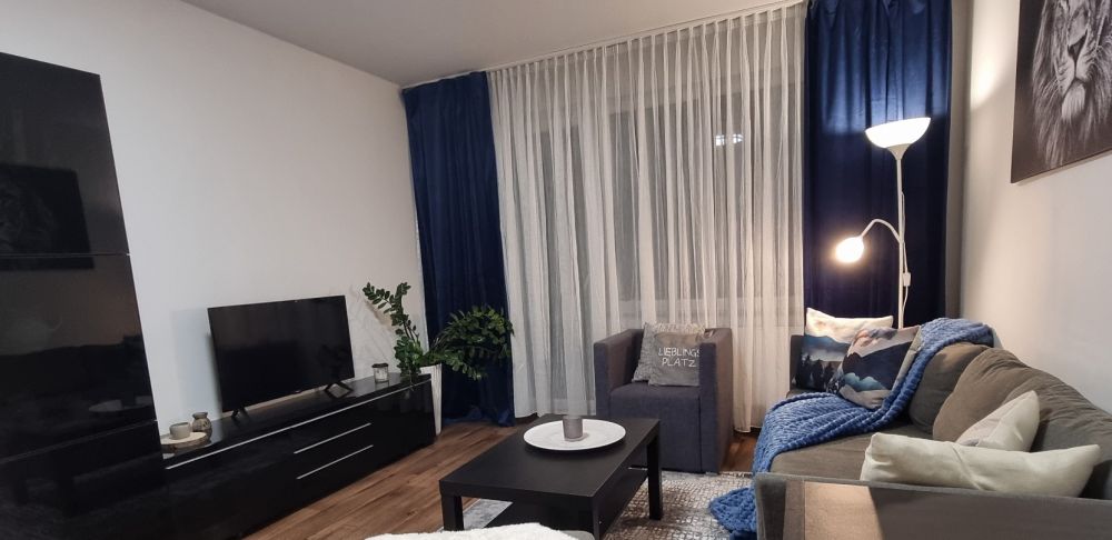 Willkommen in diesem frisch renovierten und modern eingerichteten 2-Zimmer-Apartment (48 m²) in der Tennenloher Straße. Die Wohnung bietet ein separates Schlafzimmer mit komfortablem Doppelbett (bei Bedarf plus Babybett) und großem Schiebetürenschrank sowie ein helles, geräumiges Wohnzimmer mit ausziehbarem Schlafsofa (160 cm), Arbeitsplatz mit elektrisch höhenverstellbarem Tisch, Essecke für 4 Personen, ideal für 2 Erwachsene, 2 Kinder und ein Baby.