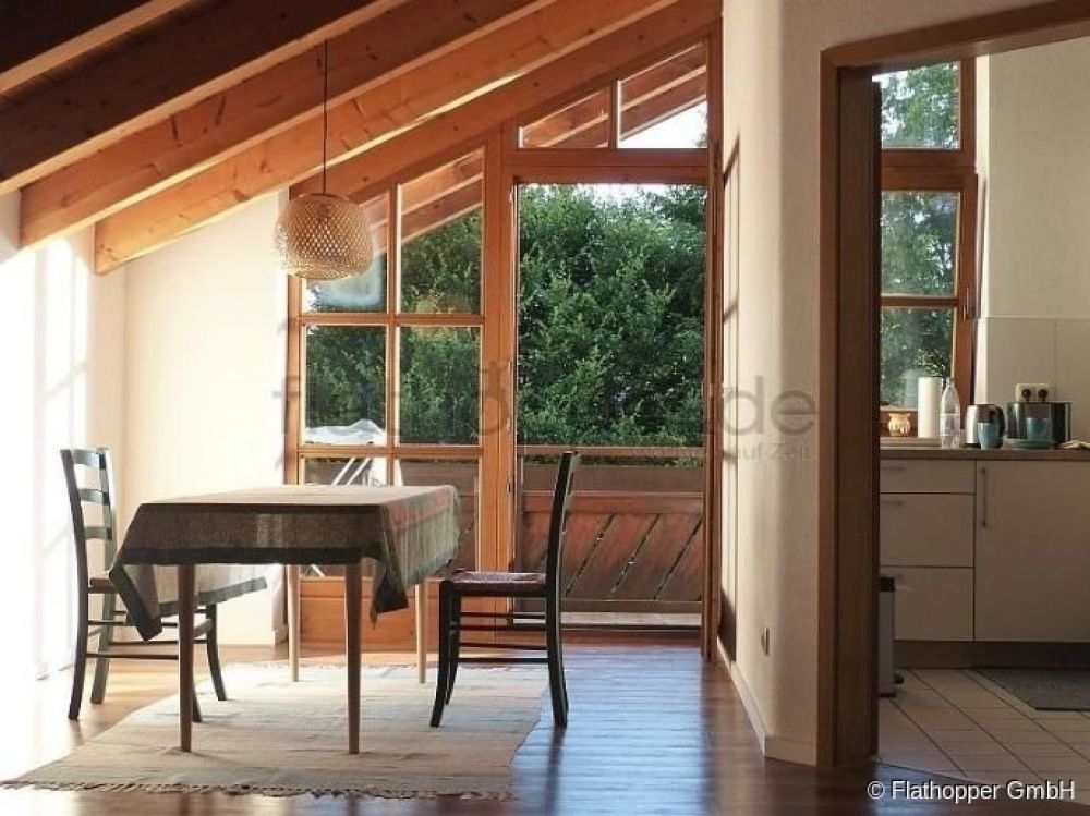 Die Wohnung liegt im 2. Stock eines Mehrfamilienhauses und wirkt durch den offenen Dachstuhl und die schönen Dielenböden sehr wohnlich.