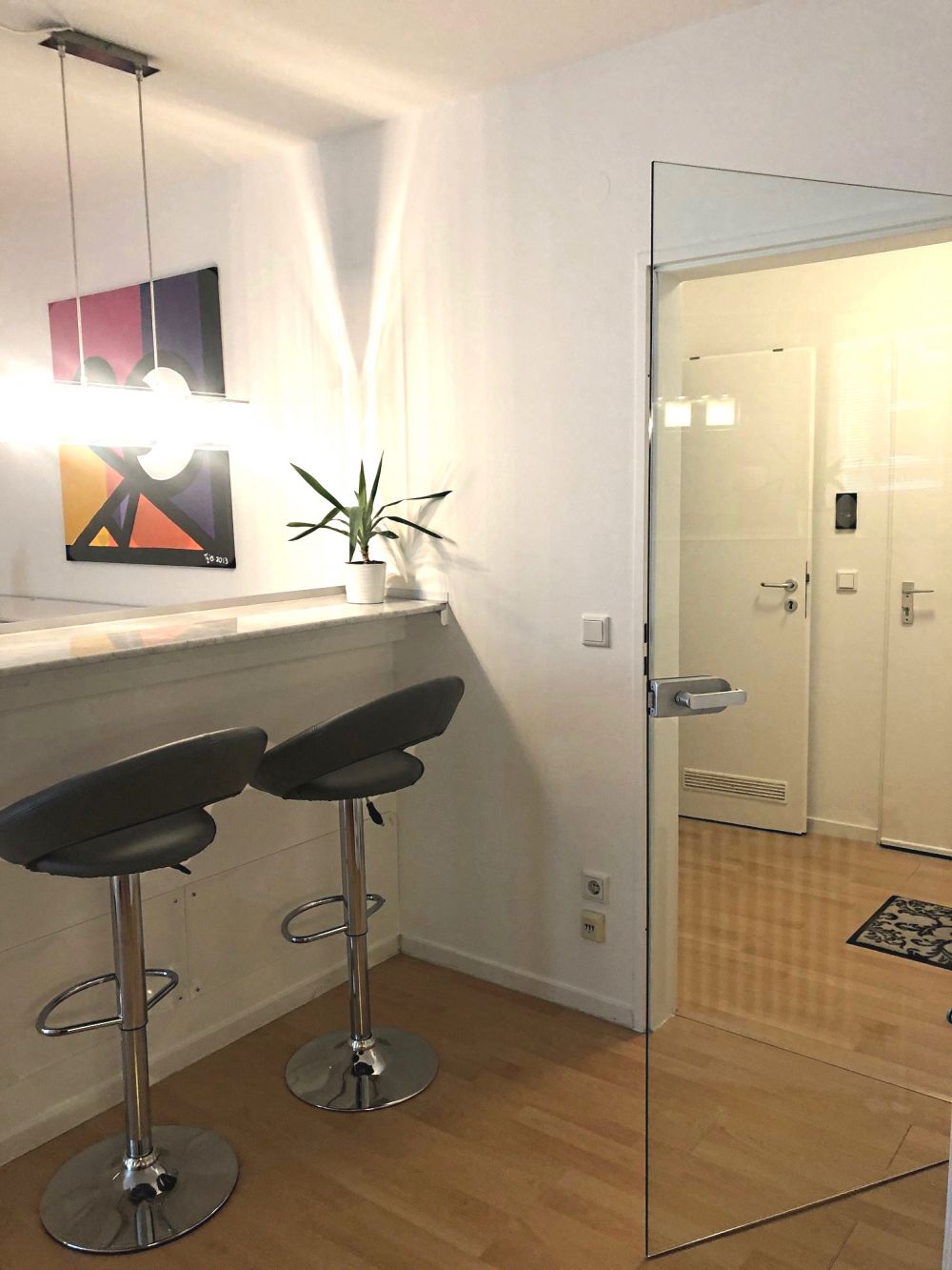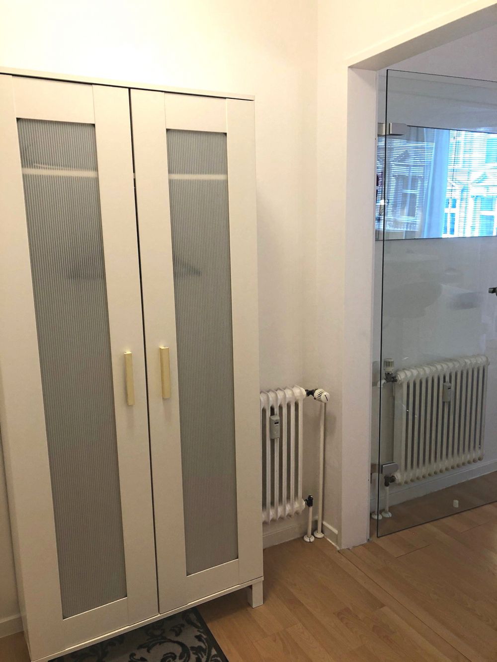Business apartment in Unterbilk. The apartment is located in a well-kept apartment building in the trendy district of Unterbilk, in the immediate vicinity of the media harbour. 2nd floor with elevator. Bright and friendly furnishing. Fitted kitchen with microwave. The sleeping area is optically separated. The floor-to-ceiling windows provide plenty of daylight. Bathroom with shower. Washing machine and dryer in the house. The building has a very large community garden with many different seating options and a barbecue area, which is a popular meeting place for tenants.