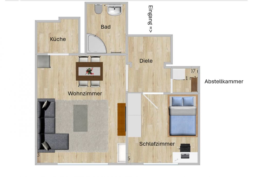 Die Wohnung ist ca. 45 m² groß, gut geschnitten und eignet sich ideal für eine Einzelperson oder ein Paar (keine WG).