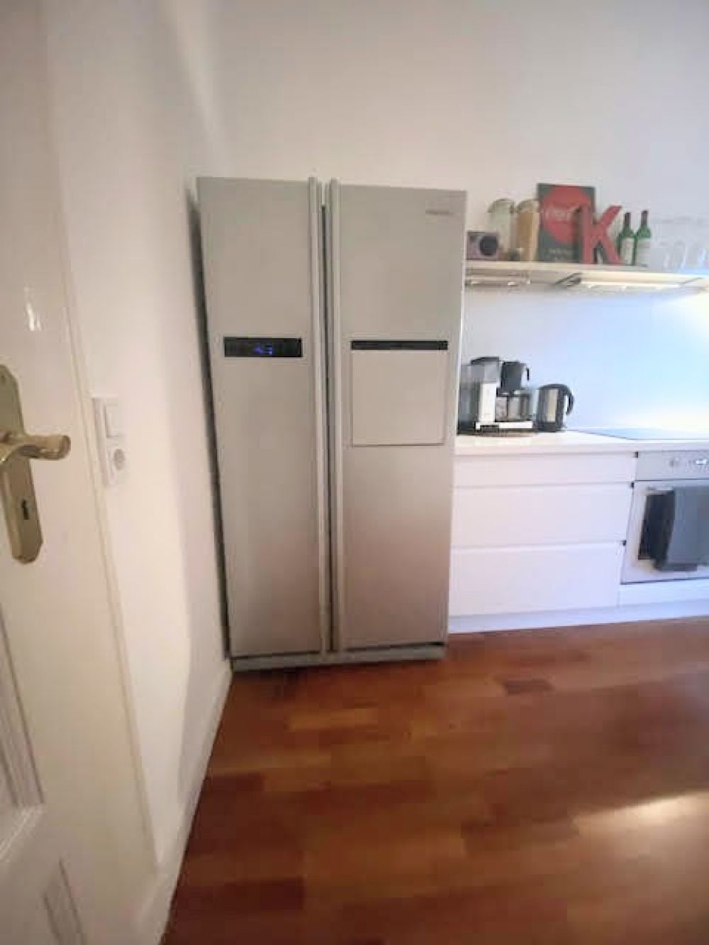 This well-divided apartment is located on the 3rd floor in a very well-kept building in Düsseldorf-Unterbilk/ Medienhafen. Upon entering the apartment, you are greeted by a beautiful and spacious hallway. The high-quality kitchen with dining area is equipped with all appliances as well as a free-standing, double-door refrigerator and a dining table, which is also ideal for a home office. A utility room offers additional storage space. The adjoining, comfortable living room offers access to the terrace overlooking the quiet inner courtyard. This is a wonderful place to unwind from everyday life. The generously proportioned bedroom with bay window is furnished with a double bed and closets offering ample storage space. Comfortable daylight bathroom with shower and washing machine. Separate guest WC.