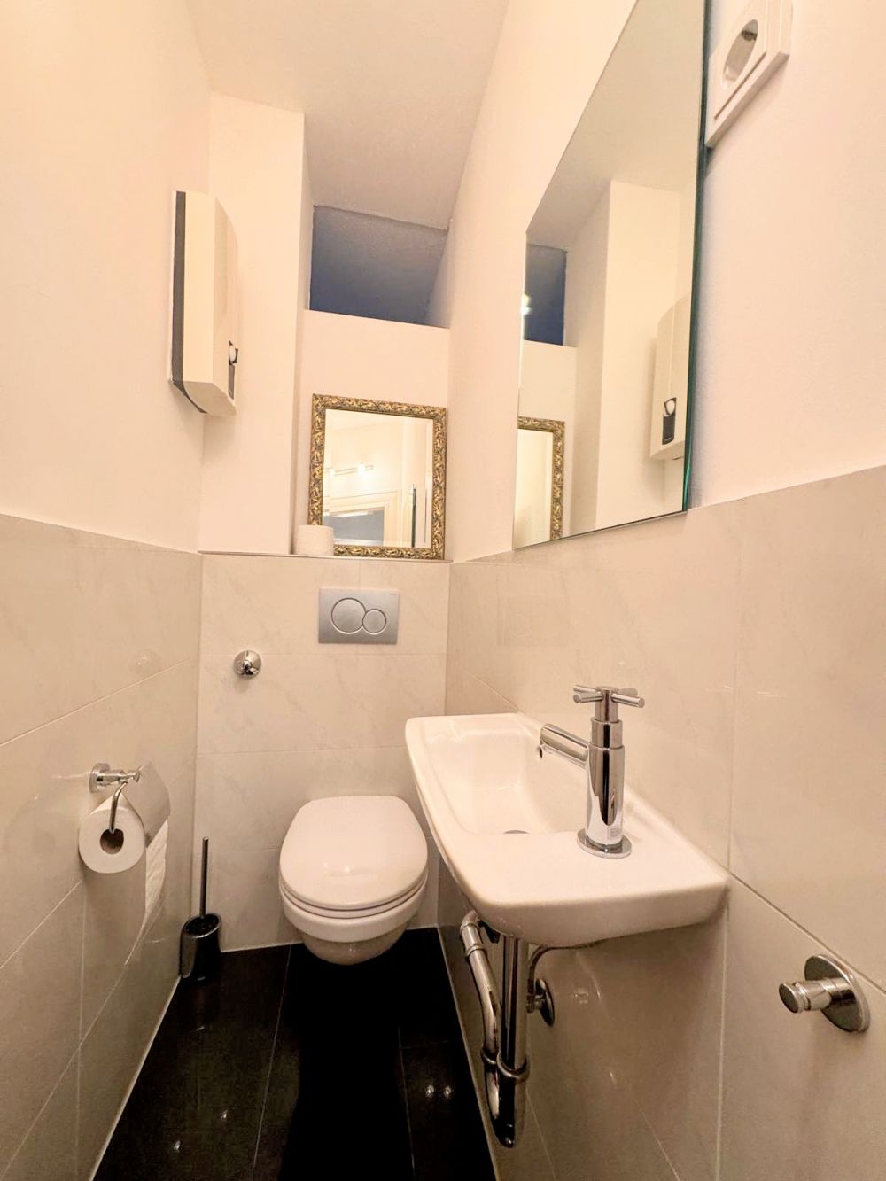Unterbilk, with its many small bars, cafés, restaurants and shops, as well as its immediate proximity to Düsseldorf's Media Harbour, is one of the trendiest and most popular districts of Düsseldorf. The shopping mile Lorettostraße offers a variety of small (designer) shops and galleries in addition to shops for daily needs. The Rhine as a recreational area is only a few minutes' walk away. Düsseldorf's old town and the famous Königsallee are also within easy walking distance. The public transport connections are very good. Tram: 5 min Motorway: 5 min Main railway station: 12 min Airport: 16 min In addition, you can get directly to Düsseldorf's old town in a leisurely 20 minutes along the Rhine, with the beautiful skyline of the harbour and Oberkassel, without car traffic.