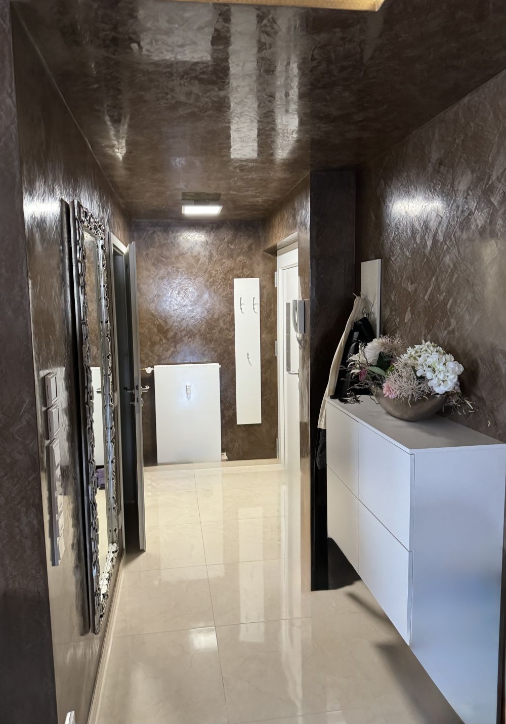 -Fliesenboden mit Fußbodenheizung + normale Heizung und Echtholz-Parketboden