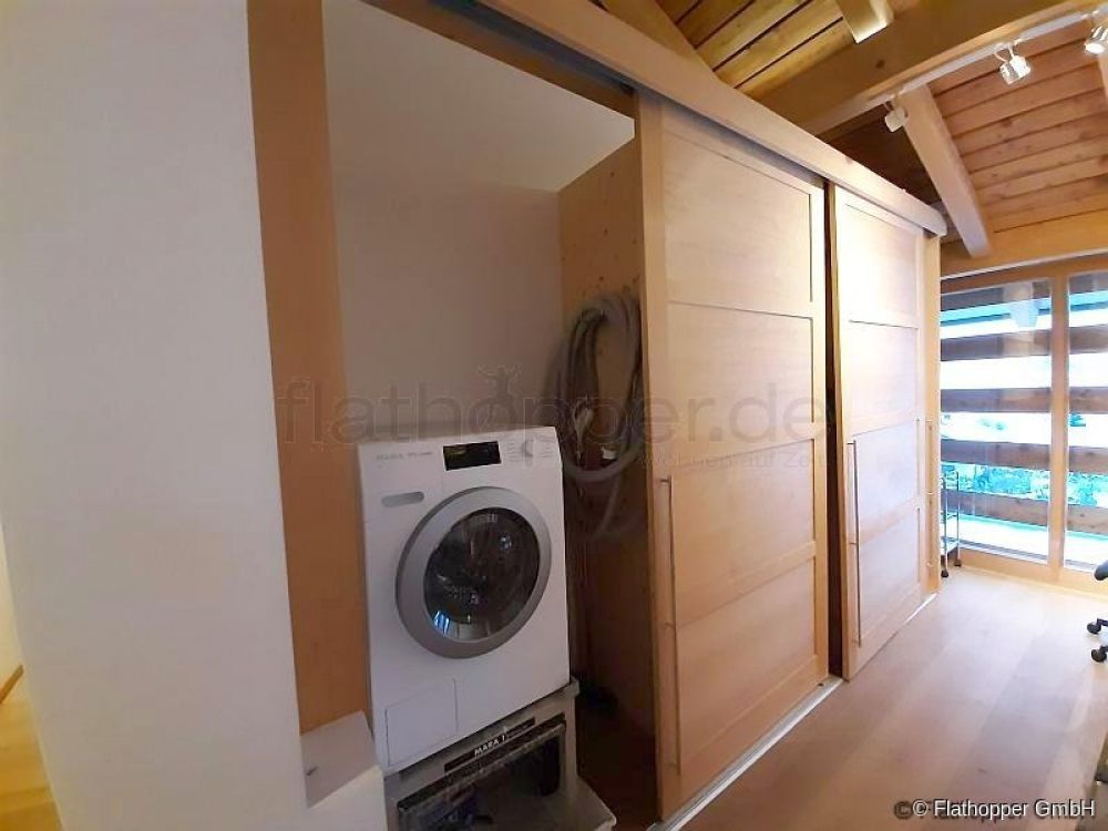 Einbauschrank im Flur im OG mit Waschmaschine und reichlich Stauraum.