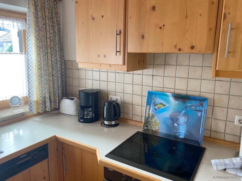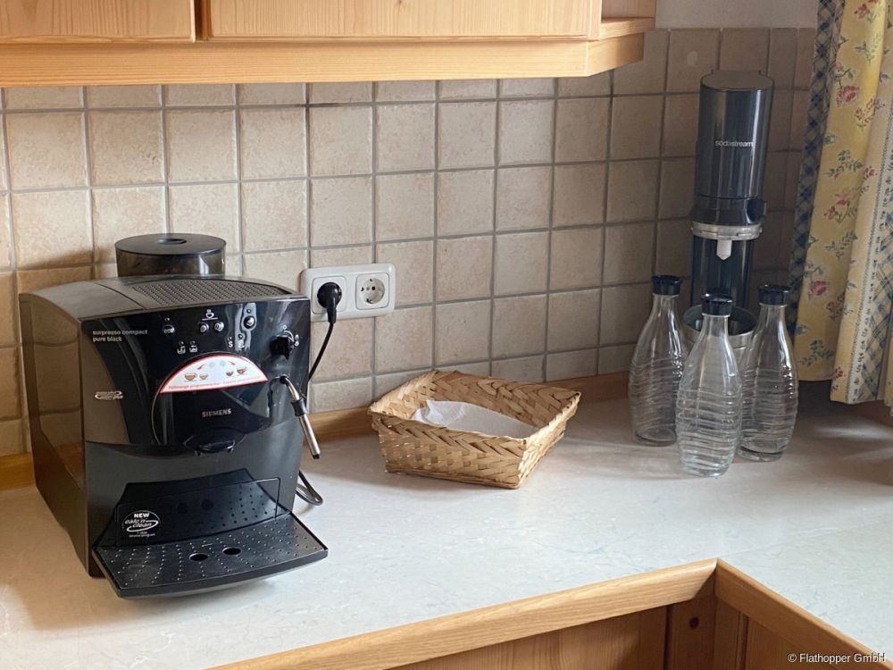 Die Küche ist komplett eingerichtet mit Spülmaschine, Backofen, Kaffeevollautomat und ausreichend Geschirr.