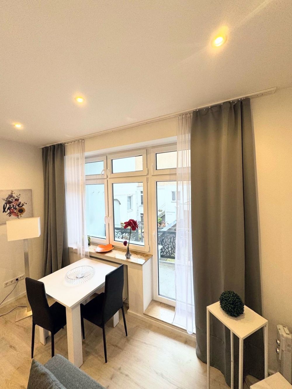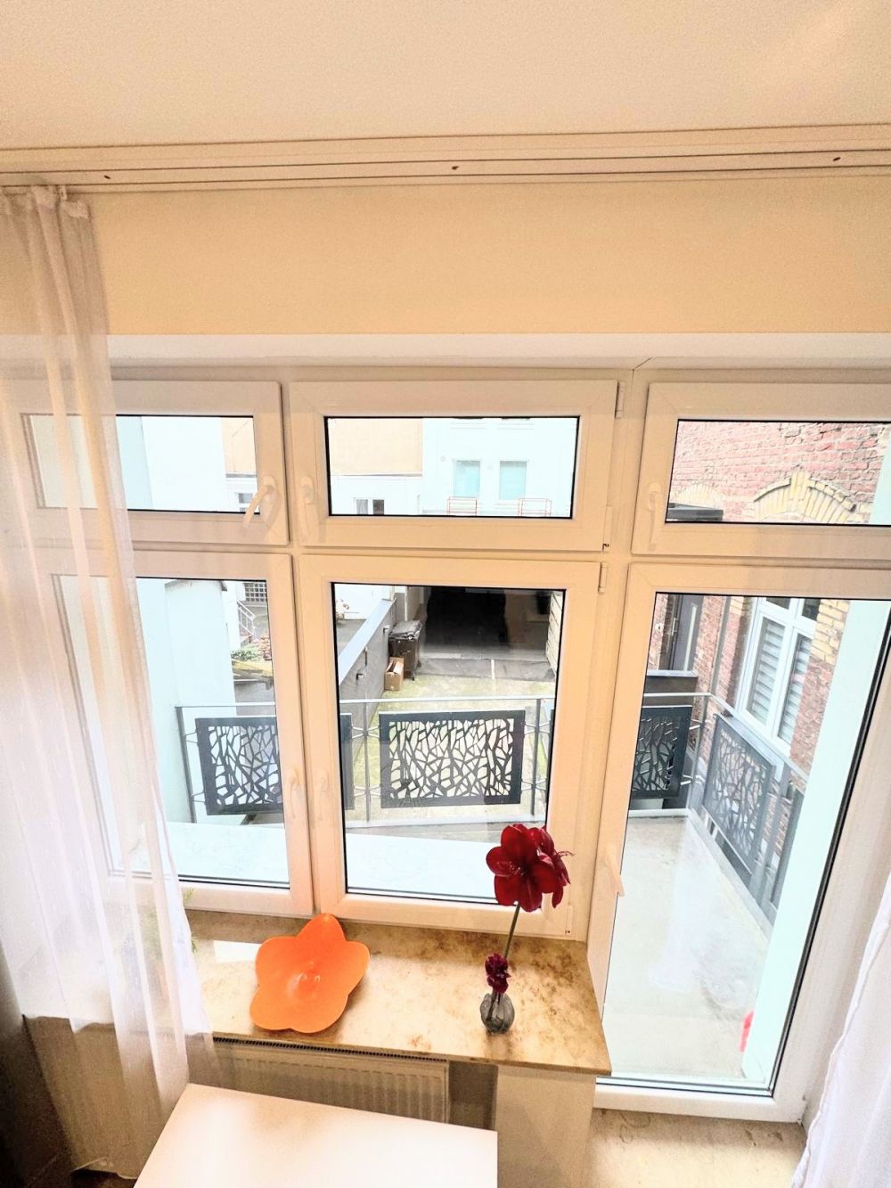 Schadowstraße/ Grafenberger Allee: Schönes, modern eingerichtetes 1-Zimmer-Appartement in einem komplett neu sanierten Mehrfamilienhaus. Hohe Decken ( 3,8m ! ) mit großartigem Raumgefühl, Parkettboden, glatt verputzte Wände. Offene Wohnküche mit Elektroherd, Ceran-Kochfeld und Mikrowelle, Waschmaschine sowie einem Esstisch mit Stühlen. Wohnraum mit Sofa, Flachbildschirm-TV und Kommode. Bett mit Mattratze.