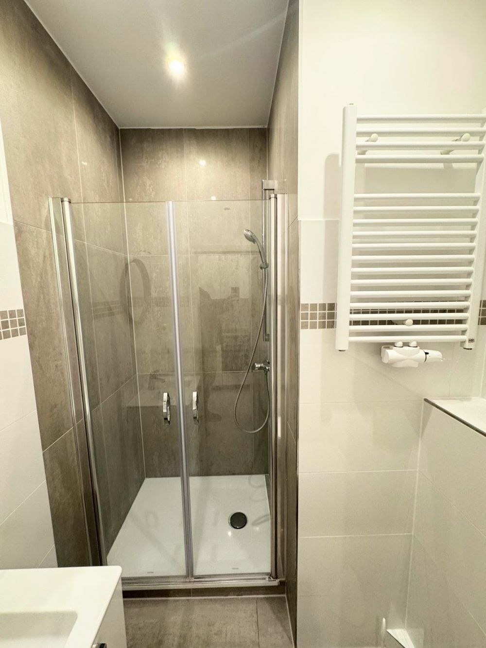Modern bathroom with glazed shower. W-LAN internet included. Electricity extra. An underground parking space can be rented separately in the car park opposite if required. Very good value for money!