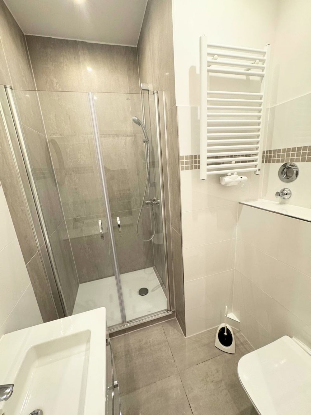 Modernes Badezimmer mit verglaster Dusche. Inklusive W-LAN Internet. Strom extra. Ein TG Stellplatz kann bei Bedarf im gegenüberliegenden Parkhaus extra angemietet werden. Sehr gutes Preis-Leistungs-Verhältnis!