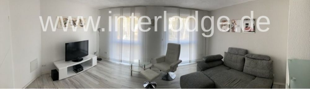 Modern möbliertes Nichtraucher-Apartment für Wochenendpendler im 1. OG, sehr hell durch die bodentiefen Fenster. Wohn-/Schlafraum mit Schlafcouch, Digital-TV, Sat-TV, Vinylboden mit Fußbodenheizung, Offene Küche mit Einbauzeile. Weiß gefliestes Bad mit Wanne und Glasdusche. Monatliche Reinigung inklusive.