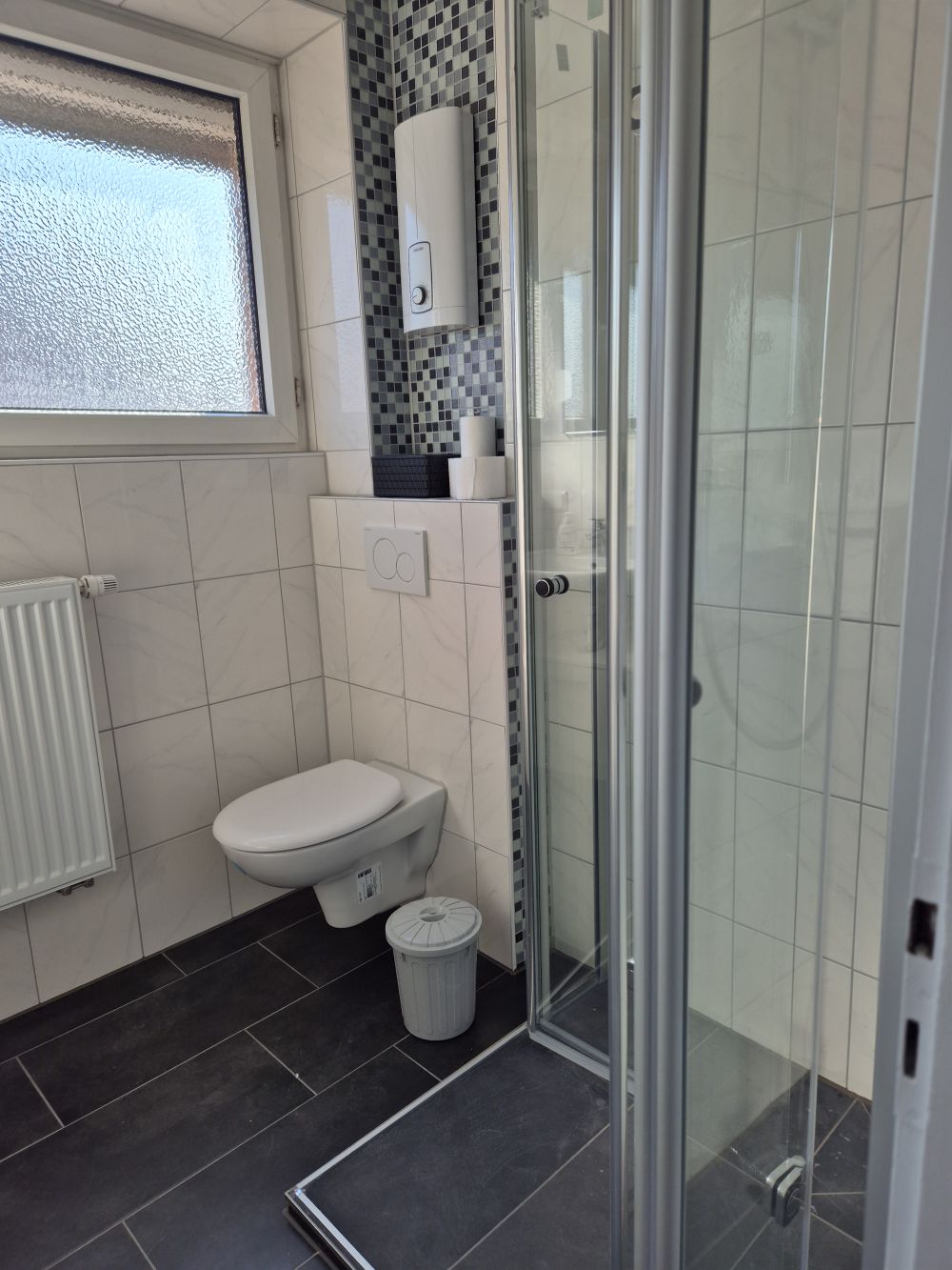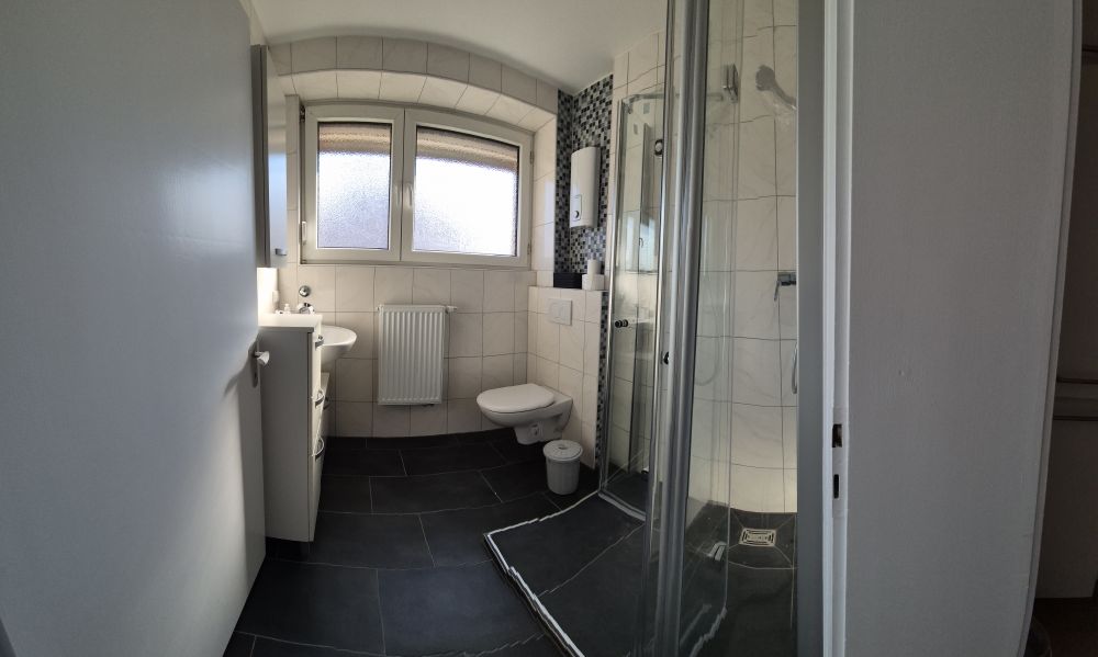 Das Tageslichtbad ist modern mit Dusche.
