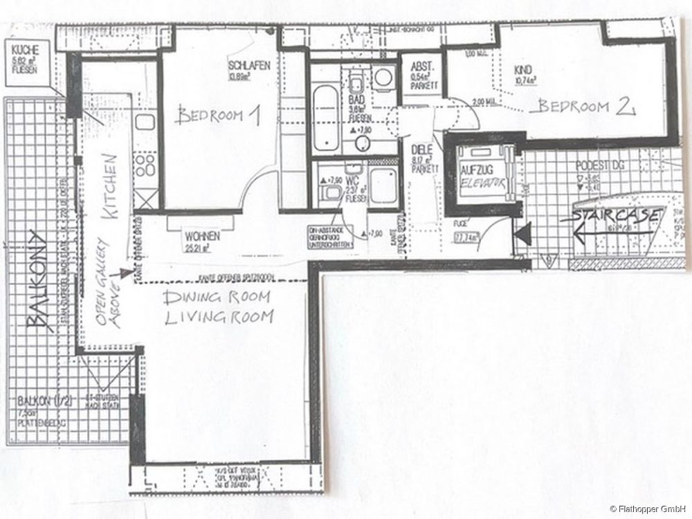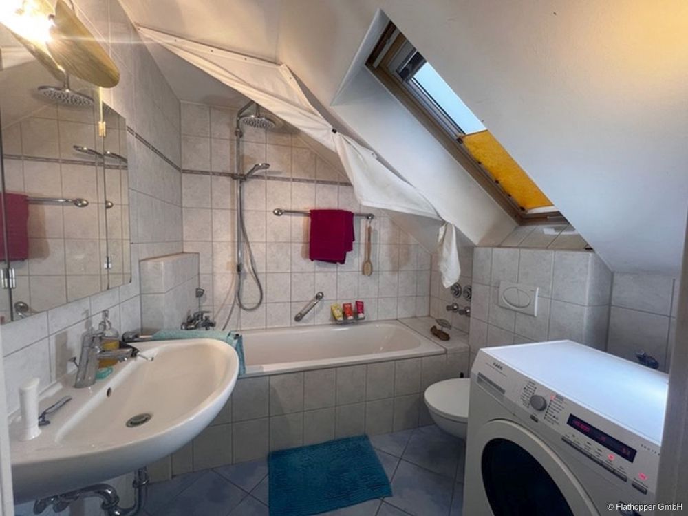 Die Wohnung befindet sich im 1. Obergeschoss (Dachgeschoss) eines Mehrfamilienhauses mit Aufzug und Balkon.